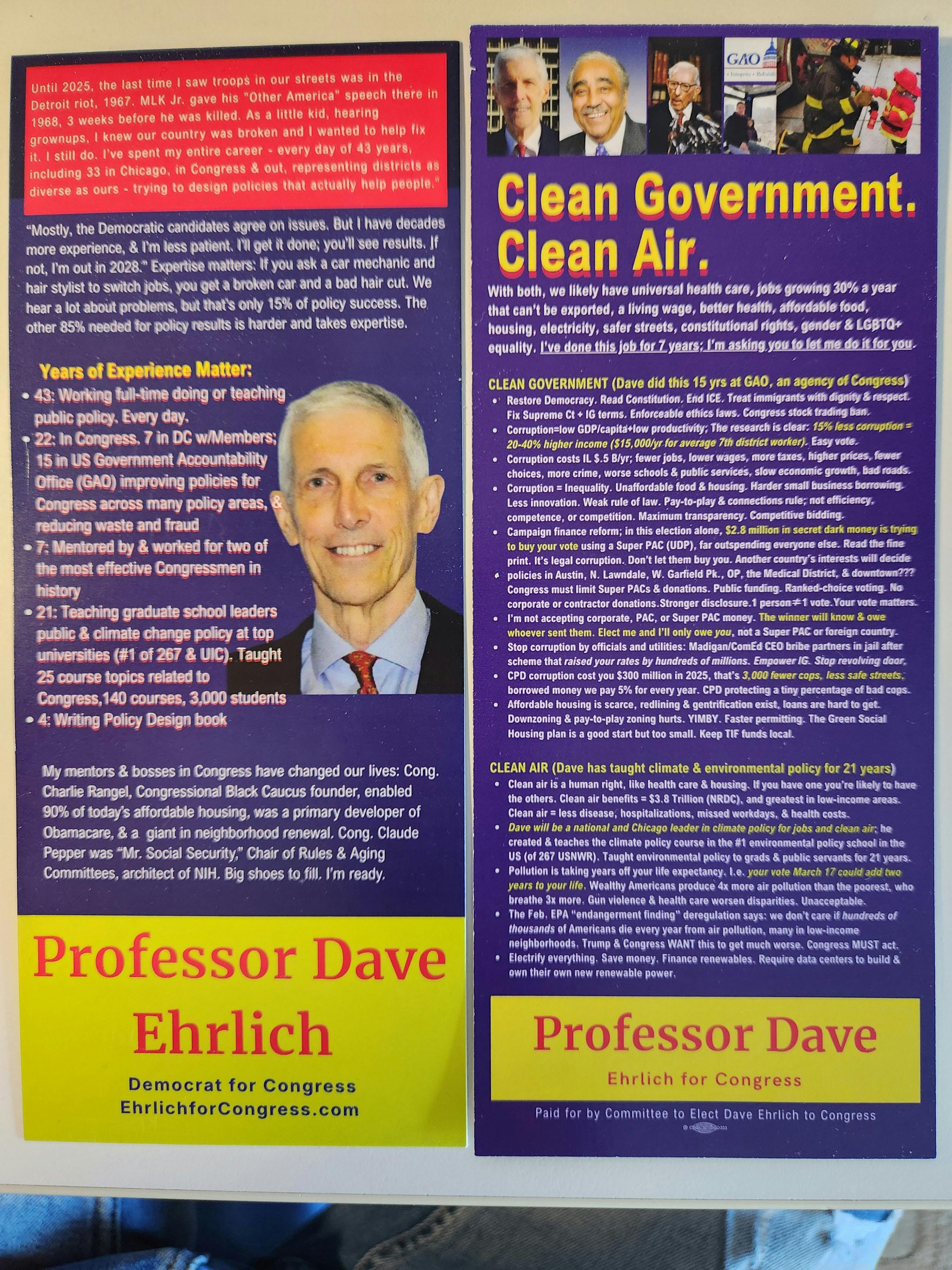 Clean Government. Clean Air. I'm Dave Ehrlich, and I'm ready to lead.